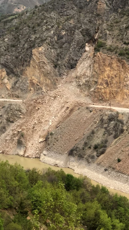 Selda FIRAT/KÜRTÜN (Gümüşhane), (DHA)- GÜMÜŞHANE’nin Kürtün ilçesinde yamaçtan kopan toprak ve irili ufaklı kaya parçaları nedeniyle karayolu ulaşıma kapandı. Yolda uzun araç kuyruğu oluşurken heyelan anı kameralara yansıdı.
