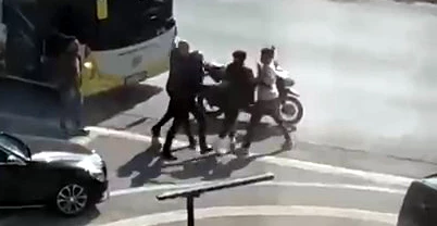 Tahtakale Mahallesi Ispartakule Bulvarı'nda aynı yönde ilerleyen İETT otobüsünün şoförü ile bir motosiklet sürücüsü arasında yol verme nedeniyle tartışma çıktı. İki sürücü aralarındaki tartışmanın büyümesiyle araçlarını yolda durdurup indi ve birbirine saldırmaya başladı. İkili bir süre yol ortasında kavga etti. Çevredekilerin araya girmesiyle kavga sonlandırılırken, o anları bir kişi cep telefonu kamerasıyla kaydetti.
