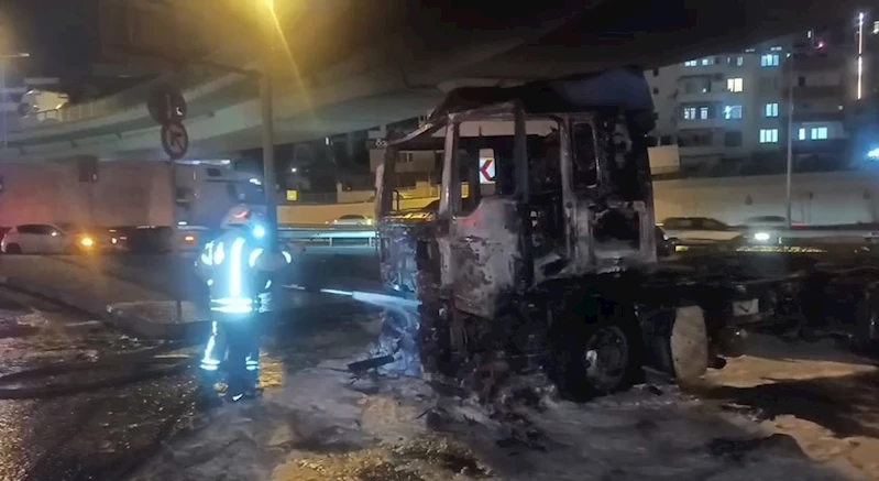 Baran AKKAYA-Veysel TİMDU-İhsan DÖRTKARDEŞ/İSTANBUL,(DHA)-BEYLİKDÜZÜ Ambarlı liman yolunda seyir halinde olan TIR’ın motor kısmında yangın çıktı. Aracı olduğu yerde durdurup, inen sürücü yaralanmazken, alevler TIR'ın tamamını kapladı. İhbar üzerine İhbar üzerine olay yerine gelen itfaiye ekiplerinin müdahalesi ile yangın söndürüldü.