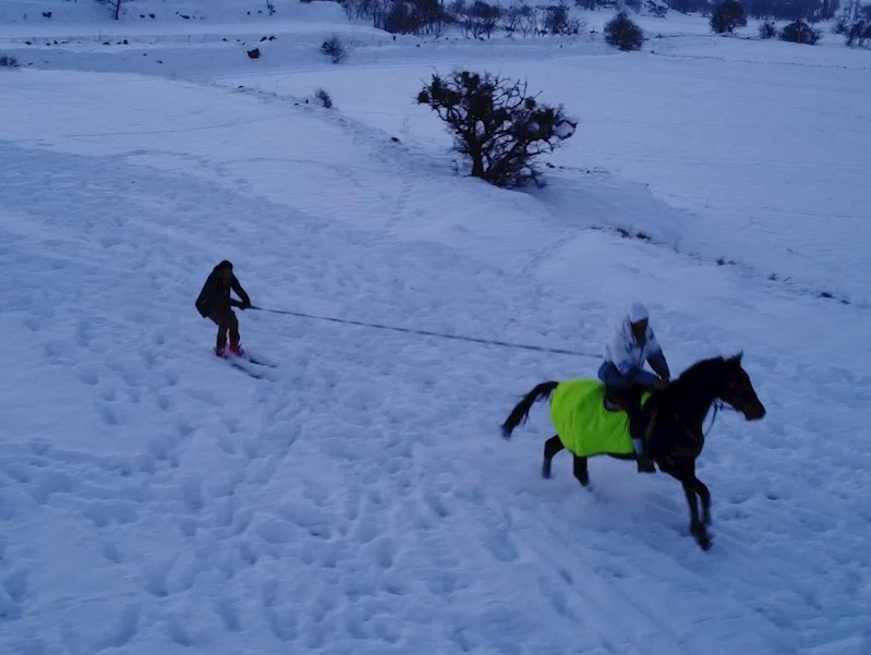 Furkan KAVUKLU-Samed Aydın SUN/KAYSERİ, (DHA)- KAYSERİ’de etkili olan kar yağışı sonrası atlı okçuluk spor kulübü üyeleri, atın arkasında kayakla kaydı. Kafkas Atlı Okçuluk Spor Kulübü üyesi Berkant Koray Yıldırım, "Şehrimizde hem atçılık hem de kayağın önemli bir rolü var. Biz de bunlardan kaynaklı böyle bir şey denedik. İlk defa yapıyoruz. Çok güzel bir duygu" dedi.