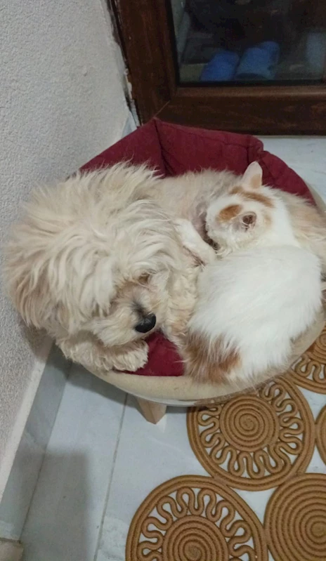 Yavru kediyi bulduklarında henüz 15 günlük olduğunu söyleyen Özlem Usluer, “İkisi de bebeklikten beri bizimle yaşıyor. Bebekto’yu biz yan bahçemizde bulduk. Biz biberonla büyüttük besledik. Karamel’in yanında büyüdüğü için aralarında bir bağ oluştu. Şu anda Karamel, Bebekto’yu emziriyor. Kendi bebeği sanıyor. İkisi de evimizin maskotu oldular. Gayet güzel bir ilişkileri var. Biz de şok olduk. Sabah uyandığımızda Karamel emziriyor. Tabii ki biz bunu görünce içimizi ısıttı. Çok güzel birlikte oynuyorlar. Kendisi doğursa bu kadar ilgilenirdi. Gören herkes ilişkilerine çok şaşırıyor. Hayvan sevgisi her şeye bedeldir” dedi. (DHA)
