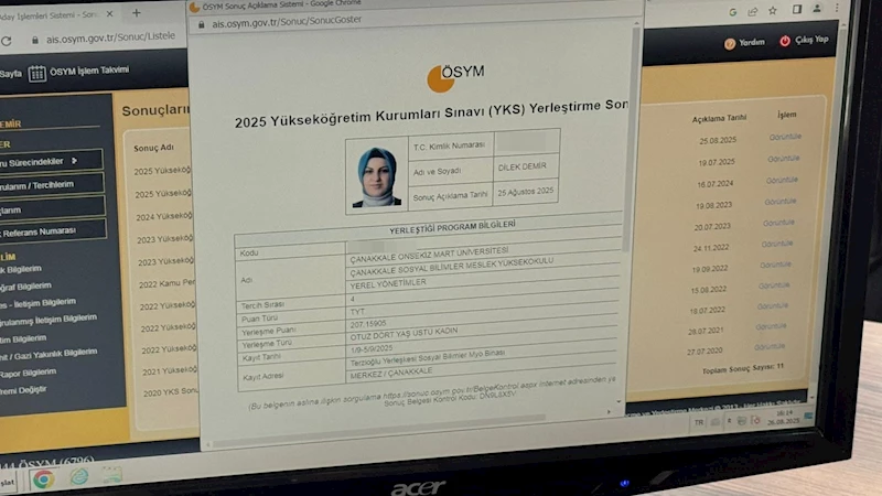 Bu yıl yapılan Yükseköğretim Kurumları Sınavına (YKS) giren Demir, yaptığı tercihle Çanakkale Onsekiz Mart Üniversitesi Sosyal Bilimler Meslek Yüksekokulu (MYO) Yerel Yönetimler Bölümü’ne yerleşerek üniversiteli oldu. Duygularını anlatan Demir, şunları söyledi: