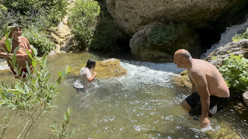 Hüsnü Ümit AVCI-Arife Defne DOĞAN/SİVAS, (DHA)- HAVA sıcaklığının mevsim normallerinin üzerinde seyrettiği Sivas'ta tatilciler, sulak yerler, mesire alanları ve yaylaları tercih etti. İstanbul'da yaşayan Bozkurt ailesi de yakınlarını ziyaret için geldikleri Sivas'ın Doğanşar ilçesinde bulunan tabiat harikası Dipsizgöl Şelalesi'nin soğuk suyunda serinleme imkanı buldu.