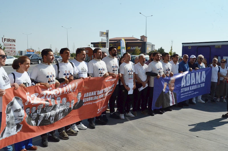 CHP Adana Yüreğir Gençlik Kolları, 11 gün önce 'Adana'dan Silivri'ye Özgürlük Yürüyüşü' başlattı. Tutuklu CHP'li belediye başkanlarının özgürlüklerine kavuşması için başlatılan yürüyüşün 245’inci kilometresinde Aksaray'a ulaşan Yüreğir Gençlik Kolları Başkanı Ahmet Dayanan, beraberindeki heyet basın açıklaması yaptı.