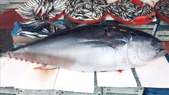 Aksaray´da 200 kiloluk orkinos balığı büyük ilgi gördü