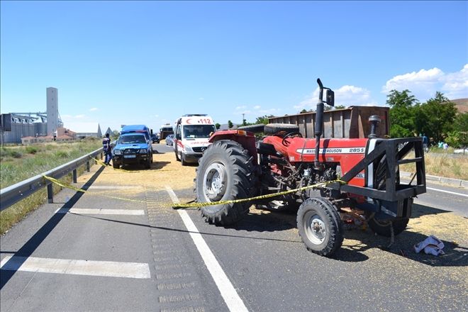 Mustafa Sevindi´nin (48) kullandığı 68 DR 934 plakalı arpa yüklü traktör, Aksaray-Ankara karayolunun 27. kilometresinde, aynı yönde seyreden Kenan D. (25) idaresindeki 51 KZ 318 plakalı tıra arkadan çarptı.