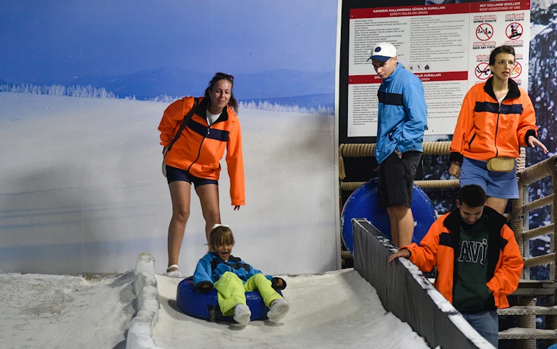 Adana'dan Antalya'ya geldiklerini belirten Şevin Ergül Erol, "Ben sıcak havayı seviyorum, aksine soğuk sevmiyorum. Ama çocuklarımız buraya gelmeyi çok istedi. Bizler Adana'dan dolayı sıcağa çok alışkınız. Kar odasında bir nebze de olsa serinledik" dedi.