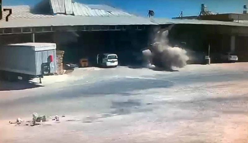 Antalya'nın Demre ilçesindeki toptancı halindeki iş yerinde, saat 15.00 sıralarında meydana gelen patlama anı güvenlik kamerasına yansıdı. Patlamanın ardından iş yerinin duvarlarının parçalanması, çevreye çok sayıda tuğla ve beton parçasının savrulması yer aldı.