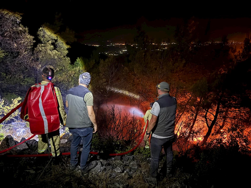 Aydın’ın Söke ilçesine bağlı Sazlıköy Mahallesi’nde saat 16.00 sıralarında makide çıkıp ormana sıçrayan yangında 10 saat geride kaldı. Alevlerin kontrol altına alınması için ekiplerin yoğun müdahalesi devam ediyor. (DHA)