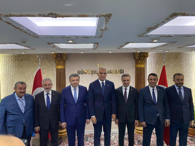 Kültür ve Turizm Bakanı Mehmet Nuri Ersoy, Gümüşhane Valiliği’ni ziyaret etti. Vali Aydın Baruş ve kent yetkilileriyle görüşen Bakan Ersoy, ziyaret sonrası açıklama yaparak, “Göreve geldiğimiz günden bugüne ülkemizin her bölgesinde; illerimizin kendi özgün değerleri, kültürel mirası ve turizm varlıklarıyla pay aldıkları, 12 aya yayılmış nitelikli bir Türk turizmi bina etmek için çalışıyoruz. Geride bıraktığımız 7 yılda elde ettiğimiz rakamlar hedeflerimize ne denli güçlü ilerlediğimizi göstermiştir ve hamdolsun aynı başarı grafiği ve kararlılıkla yolumuza devam ediyoruz. Sürekliliği sağlamak ve daha büyük hedeflere ilerlemek adına da şehirlerimizi ziyaret etmeye, inceleme ve değerlendirmeler yapmaya, yerel yönetimlerimizle ve paydaşlarımızla istişare ve iş birliği gerçekleştirmeye devam ediyoruz. Bu kapsamda bugün Gümüşhane’deyiz. Sayın Cumhurbaşkanımızın Gümüşhane’nin potansiyeli noktasında çok önemli açıklamaları, değerlendirmeleri olmuştur. Ayrıca ilimizin çevresi de düşünüldüğünde çok ciddi bir bölgesel yatırım sahası kendini göstermektedir. Bu gerçek doğrultusunda en doğru, akılcı projeleri belirleyecek ve inşallah gerekli adımları ivedilikle atarak Gümüşhane’ye layık olduğu kültür turizm ivmesini kazandıracağız” dedi.
