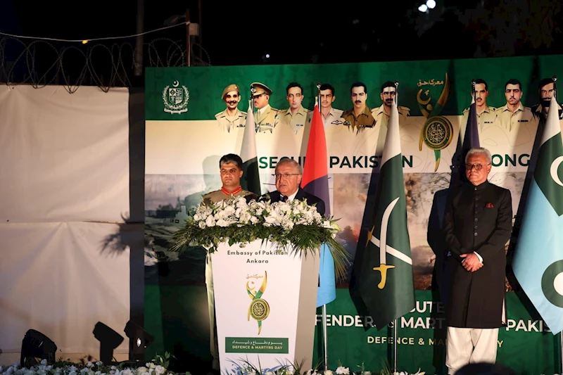 Büyükelçi Cüneyd ise iki ülkenin silahlı kuvvetleri arasındaki gelişen savunma bağları ve iş birliğinin, kardeşliğin sağlam bir dayanağı olduğunu ifade ederek, “Pakistan, kuruluşundan bu yana, devletimizin kurucusu Muhammed Ali Cinnah’ın rehberliğinde uluslararası hukuka ve ilkelere saygı politikasını benimsemiştir. Cinnah’ın şu sözlerini hatırlatmak isterim: Dış politikamız, dünya milletlerinin tümüne karşı dostluk ve iyi niyet üzerine kuruludur. Hiçbir ülkeye ya da millete karşı saldırgan emeller taşımıyoruz. Pakistan, her zaman Birleşmiş Milletler’in öz ilkelerinden biri olan kendi kaderini tayin hakkını savunmuştur. Bugün, Hindistan’ın gayri meşru olarak işgal ettiği Cammu ve Keşmir’deki ahlaka aykırı askeri işgali ve Keşmirlilerin kendi kaderini tayin hakkının reddini unutmuyoruz. Bu, uluslararası hukukun tüm kurallarına ve Birleşmiş Milletler Güvenlik Konseyi kararlarına aykırıdır. Pakistan’ın mesajı açıktır: savaş, uluslararası ihtilafların çözümü değildir; Güvenlik Konseyi kararlarına uyum ise tek geçerli çözümdür. Bu vesileyle, Pakistan’ın yanında her daim duran Türk kardeşlerimize de teşekkürlerimizi sunuyoruz. Türkiye ile tarihi, stratejik ve kapsamlı ikili ilişkilerimizden gurur duyuyoruz. İki ülkenin silahlı kuvvetleri arasındaki gelişen savunma bağları ve mükemmel iş birliği, kardeşliğimizin sağlam bir dayanağıdır ve bölgede ve ötesinde barış ile istikrarı güçlendirmeyi hedeflemektedir” diye konuştu.(DHA)