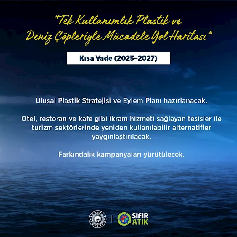 İlk etapta 2025-2027 yıllarını kapsayan kısa vadeli eylem planı hayata geçirilecek. Bu kapsamda, 'Ulusal Plastik Stratejisi ve Eylem Planı' hazırlanacak. Tek kullanımlık plastiklere yönelik mevzuat hazırlanacak. Listelenecek tek kullanımlık plastik ürünlerin kısıtlanması veya yasaklanması, gıda ambalajları ve içecek kapları için tüketimin azaltılmasına yönelik mevzuat çalışması yürütülecek. Ücrete Dayalı Genişletilmiş Üretici Sorumluluğu (GÜS) planları belirlenecek. Bu sayede plastik sektörü üretim aşamasında sorumluluklarını yerine getirmekle yükümlü olacak. Yine üretim aşamasında geri dönüştürülmüş plastik ham madde ile içecek kapları ve şişeler için özel tasarımlar oluşturulacak. Otel, restoran ve kafe gibi catering hizmeti sağlayan tesisler ile turizm sektörlerinde sürdürülebilir, yeniden kullanılabilir/doldurulabilir alternatiflerin yaygınlaştırılması sağlanacak. Tek kullanımlık plastikler ve etkileri konusunda kamu bilincini geliştirmek amacıyla her yaşa her kesime hitap eden farkındalık ve bilinçlendirme faaliyetleri, iletişim kampanyaları kamu, özel sektör, endüstri ve sivil toplum kuruluşlarının iş birliğiyle oluşturulacak.