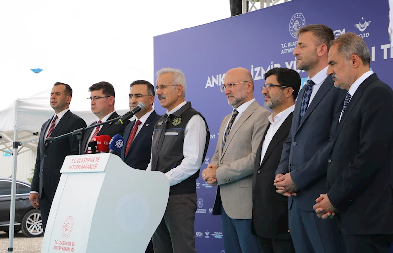 "Hızlı trenin sağladığı konfor ile seyahat süresinde gerek konvansiyonel tren gerekse de kara yoluna göre önemli avantajlar sağlanacaktır. Az önce de belirttiğim üzere Ankara-İzmir arası seyahat süremiz 3,5 saate düşerken; yine, Ankara- Afyon arası seyahat süresi 1 saat 40 dakikaya, Ankara-Uşak arası seyahat süresi 6 saat 50 dakikadan 2 saat 10 dakikaya, Ankara-Manisa arası 11 saat 45 dakikadan 2 saat 50 dakikaya düşecektir. Ve hattımız tamamlandığında yılda yaklaşık 13,3 milyon yolcu ve 90 milyon ton yük taşıyacağımızı öngörüyoruz. Bu, Afyon'un termal turizmine, Uşak ve Manisa'nın tarım ve sanayi gücüne, İzmir'in limanları ve turizm potansiyeline yepyeni bir ivme kazandıracak; güzergah üzerindeki şehirlerimiz, adeta birer inci gibi bu çelik raylarla birbirine bağlanacak; ticaret, turizm ve kültürel etkileşimde altın bir çağ yaşamaya başlayacaktır. Hızlı tren hattımızda Polatlı-Afyon arasındaki toprak işleri, viyadük, köprü ve tünel çalışmaları tüm hızıyla devam ediyor. Kazı işlerinde yüzde 97, dolgu işlerinde yüzde 84, köprü-viyadük işlerinde de yüzde 90, alt geçit köprüsü işlerinde yüzde 87, üst geçit köprüsü işlerinde yüzde 90, menfez işlerinde yüzde 92 ve 6 bin 346 metrelik Bayat1, Bayat2, Köroğlu tünellerinde ise yaklaşık yüzde 75 oranında ilerleme kaydettik. Hattımızın TCDD Genel Müdürlüğü tarafından inşa edilen Banaz-Eşme, Eşme-Salihli ve Salihli-Manisa olmak üzere toplam 180 km'lik kesimindeki altyapı işlerinin tamamında yüzde 77'lik fiziksel ilerleme sağladık. Ankara-İzmir Yüksek Hızlı Tren Hattımız, tamamlandığında sadece bir ulaşım projesi değil, aynı zamanda Afyon'un, Uşak'ın, Manisa'nın ve İzmir'in kalkınma destanı olacaktır. Bu hat, İzmir'in limanlarını, Ege'nin organize sanayi bölgelerini ve tarım merkezlerini ulusal demir yolu ağımıza daha güçlü bir şekilde bağlayarak, Türkiye'nin küresel ticaretteki rolünü perçinleyecektir. Ankara-İzmir Yüksek Hızlı Tren hattımızın açılışını gerçekleştirdiğimizde de ülkemizin bir prestij projesini daha başarıyla tamamlamanın gurunu yaşayacağız. Ülkemiz adına çok büyük ve önemli bir projeyi daha hayalden gerçeğe dönüştüreceğiz."