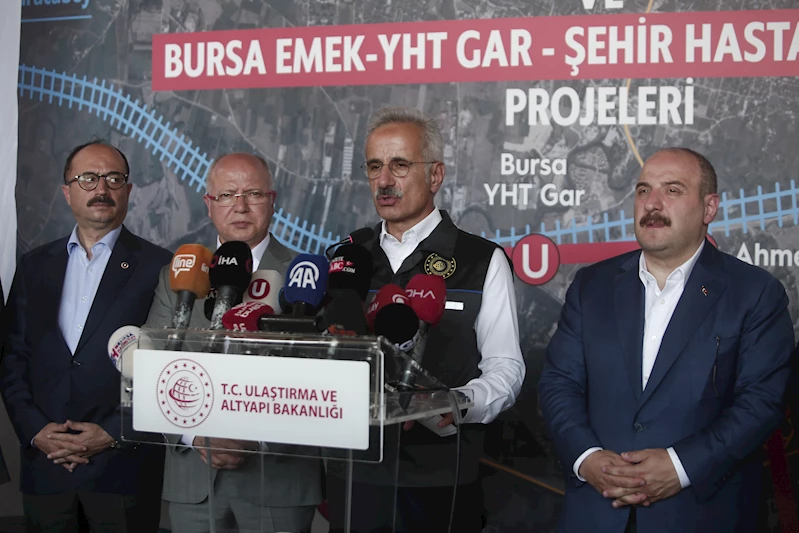 Gazetecilere yaptığı açıklamada, Bursa için hafif raylı sistem ile ilgili gerekli tespitleri yaptıklarının altını çizen Bakan Uraloğlu, “Bizim Bursa Uludağ Üniversitesi ile depo sahası arasında yaklaşık 1200 metrelik bir alan vardı. Burayı projeye sonradan ilave ettik. Bunu üniversite ile depo arasında bağlantıyı sağlamış oldu. Yine aynı şekilde devam eden Emek-Şehir Hastanesi arasındaki yaklaşık 4 bin 900 metrelik hatta da çalışmalar devam ediyoruz. Buradaki çalışmaları da inşallah 2026 sonuna kadar bitirmeyi istiyoruz. Ama bu hafif raylı sistem ve metronun bulunduğumuz Yüksek Hızlı Tren Gar İstasyonu'na kadar olan bölümü, yine yılın ilk yarısında veya ortalarında bitirerek bu entegrasyonu sağlamış olacağız. Yine burada bir kara yolu ve bağlantısını da araçlarıyla kullanacak olan vatandaşlarımız için Karayolları Genel Müdürlüğümüz ve Altyapı Yatırımları Genel Müdürlüğümüz ile planladık. İnşallah onun yapı sürecini de önümüzdeki günlerde başlamış olacağız” ifadelerini kullandı.