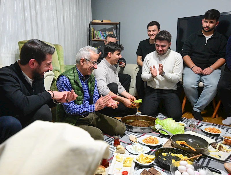 TRABZON, (DHA)- ULAŞTIRMA ve Altyapı Bakanı Abdulkadir Uraloğlu, Trabzon'da üniversite öğrencilerinin evine konuk oldu. Öğrenciler ile sahur yapan Uraloğlu, "Bu sofralar sadece yemek yenilen değil, gönüllerin birleştiği yerler" dedi.