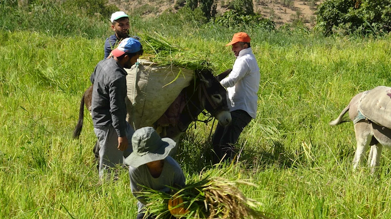 Remziye ÖNER/GERCÜŞ (Batman), (DHA)- BATMAN’ın Gercüş ilçesinde çiftçiler, tarım makinelerinin giremediği arazilerde dededen kalma geleneksel yöntem, orakla pirinç hasadına başladı.