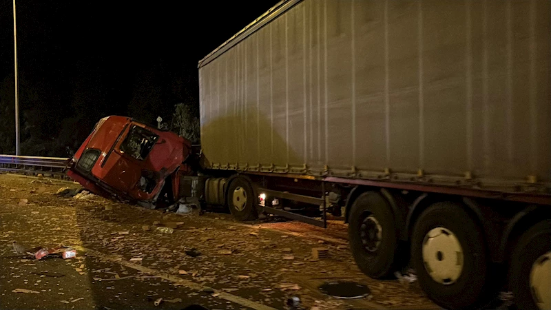 Zübeyde ÖZMEN/ BOLU, (DHA)- BOLU’da, Anadolu Otoyolu’nda şoförünün kontrolünden çıkan TIR, tuğla yüklü TIR’a çarptı. Kazada yaralanan olmazken, yola savrulan tuğlalar nedeniyle ulaşım aksadı.