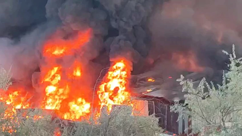 Şahan İLHAN/BURSA,(DHA)- BURSA'nın Osmangazi ilçesine bağlı Geçit Mahallesi'nde bulunan geri dönüşüm tesisinde yangın çıktı. Çevredekilerin ihbarı üzerine olay yerine çok sayıda itfaiye, polis ve sağlık ekibi sevk edilirken, gökyüzü siyah dumanla kaplandı. Ekiplerin söndürme çalışmaları sürüyor. (DHA)