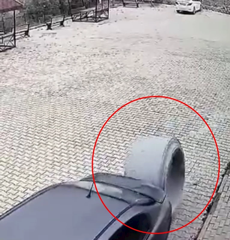 Olay, saat 13.00 sıralarında Cihatlı Mahallesi'nde bulunan inşaat alanında meydana geldi. İnşaat alanında, altyapı için kullanılan beton su borusu, hafif meyilli alanda kendiliğinden hareketlenerek, inşaat yakınında bulunan bir sitenin otoparkında park halinde otomobile çarptı. Otomobilde maddi hasar meydana gelirken, o anlar sitenin güvenlik kamerasına yansıdı.