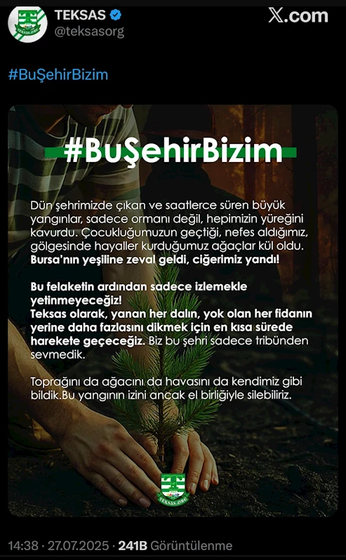 Bursaspor ile Eskişehirspor, yeni sezon hazırlıkları kapsamında 16 Ağustos’ta saat 20.00'da Bursa Atatürk Spor Kompleksi Matlı Stadyumu'nda dostluk maçına çıkacak. Maç gelirleri ise Bursa ve Eskişehir'de çıkan orman yangınlarının yaralarını sarmak için Bursaspor taraftar grubu Teksas'ın başlattığı kampanyaya bağışlanacak. Bursaspor’un sosyal medya hesaplarından yapılan paylaşımda dostluk maçı için ilk 24 saatte 24 bin biletin satıldığı açıklandı.