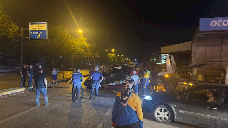 Emre ÖNCEL/ SAMSUN, (DHA)- SAMSUN’un Tekkeköy ilçesinde çekiciye çarpan otomobildeki sürücü Kemal D. ile yanındaki eşi Sevgi D., yaralandı.