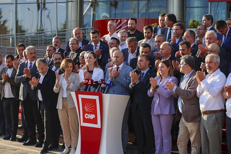 Samet ÖKSÜZ/ ANKARA, (DHA)- CUMHURİYET Halk Partisi’nin (CHP) 81 il başkanı, parti genel merkezi önünde yaptıkları ortak açıklamada, “İktidar güdümündeki siyasallaşmış yargının aparatları partimiz hakkında ne karar verirse versin; adına kayyum da deseler, butlan da deseler, 81 il başkanımız bu kararı tanımayacaktır” dedi.