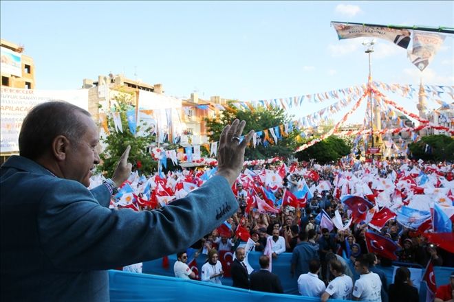 Cumhurbaşkanı ve AK Parti Genel Başkanı Recep Tayyip Erdoğan, "AK Parti sadece konuşan, sadece vaatte bulunan bir parti değildir. AK Parti, verdiği her sözün arkasında duran, söylediğini yapan bir partidir. Bunun için 24 Haziran seçimlerinde de sadece yapacağımız şeyleri söylüyoruz. Öyle uzayda altın bulma gibi uçuk, kaçık vaatlerimiz yok. Alın terimizle, emeğimizle, bileğimizle ne yapabileceksek onu söylüyoruz." dedi.