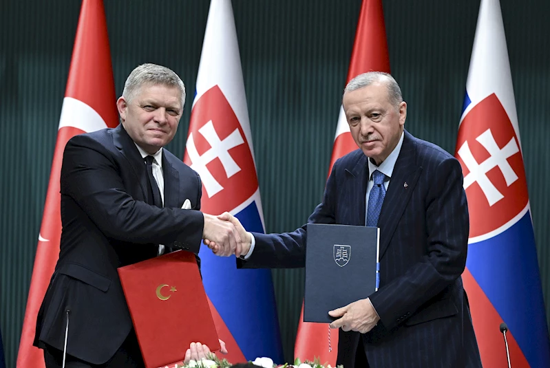 Cumhurbaşkanı Recep Tayyip Erdoğan, Türkiye'ye resmi ziyarette bulunan Slovak Cumhuriyeti Başbakanı Robert Fico ile baş başa ve heyetler arası görüşmenin ardından Cumhurbaşkanlığı Külliyesi'nde anlaşmaların imza töreni ve basın toplantısı düzenledi. Basın toplantısı öncesinde Türkiye ile Slovak arasında 4 anlaşma imzalandı. İki ülke arasında; iletişim, kültür ve turizm, askeri çerçeve anlaşması ile stratejik ortaklık tesis edilmesi yönelik 4 anlaşma imzalandı. İmzalanan anlaşmalarından ardından Erdoğan ve Fico basın toplantısında konuştu. Erdoğan, Slovak Başbakanı Fico'yu Türkiye'de misafir etmekten memnun olduğunu söyledi. Erdoğan, "Bugünkü görüşmelerimizde ikili ilişkilerimizi daha da derinleştirmenin yollarını değerlendirdik. Az önce imzaladığımız ortak bildiride ilişkilerimizi stratejik ortaklık seviyesine çıkardık. Bu ortaklıkların hayırlı olmasını temenni ediyorum. Bugün ayrıca bakanlıklarımız ve kurumlarımız arasında askeri, savunma sanayi ve kültür gibi muhtelif alanlarda iş birliğini öngören belgeler de imzalandı. Bütün bu belgelerin ilişkilerimizi güçlendireceğine ve mevcut iş birliğimizi daha ileri noktalara taşıyacağına inanıyorum" diye konuştu.