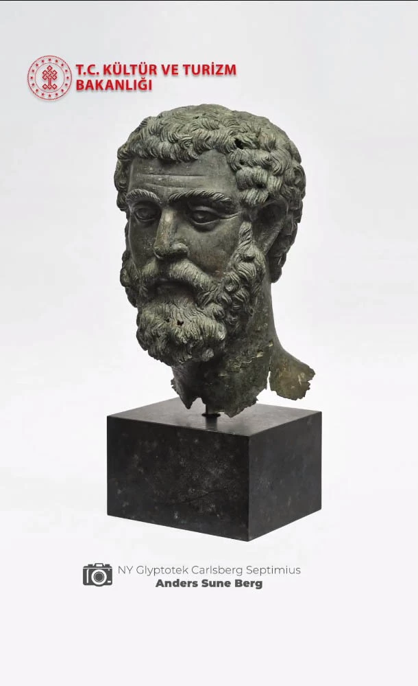 MS 193-211 yılları arasında hüküm süren Roma İmparatoru Septimius Severus’a ait bronz heykel başı, 1960’lı yıllarda Boubon Antik Kenti’nde gerçekleştirilen yasa dışı kazılar sırasında yurt dışına çıkarıldı. Türk bilim insanı Prof. Dr. Jale İnan’ın 1970’li yıllarda yaptığı araştırmalar ve yayımladığı bilimsel çalışmalar, eserin kökeninin belirlenmesinde ve iadesinde temel kaynak oluşturdu. Heykel başının iade süreci, Kopenhag Türkiye Büyükelçiliği ve Kültür ve Turizm Bakanlığının sunduğu belgeler ve bilimsel kanıtlar doğrultusunda, Glyptotek Müzesi’nin etik değerlere dayalı kararıyla sonuçlandı. Müze Müdürü Gertrud Hvidberg-Hansen, "Kaçak kazılarla elde edilen bu eserin ait olduğu topraklara dönmesi, müzecilik ilkeleri ve etik değerler açısından önemli bir adımdır" ifadelerini kullandı. Heykel başı, Roma sanatının detaylara verdiği önemi ve dönemin liderlik sembollerini yansıtan nadir eserlerden biri olarak kabul ediliyor.