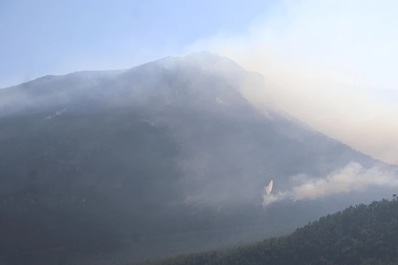 Günün ilk ışıklarıyla yangına havadan müdahale yeniden başlandı. Güncel olarak alevlere 9 helikopter, 46 arazöz, 13 su ikmal aracı, 21 ilk müdahale aracı, 5 iş makinesi ve 380 personel ile müdahale edilirken Orman Genel Müdürlüğü'nden yapılan açıklamada alevlerin büyük ölçüde kontrol altına alındığı bildirildi. (DHA)