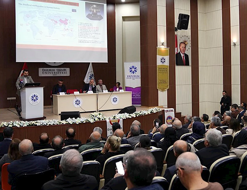 Erzurum Kalkınma Vakfı (ERVAK) ile Erzurum Teknik Üniversitesi (ETÜ) tarafından 'Deprem Gerçeği ve Erzurum' konulu panel düzenlendi. ETÜ İktisadi ve İdari Bilimler Fakültesi Konferans Salonu'nda gerçekleştirilen panelde konuşan ETÜ Rektörü Prof. Dr. Bülent Çakmak, ülke topraklarının yüzde 96'sının farklı oranlarda deprem tehlikesine sahip bölgeler içerisinde yer aldığını bildirdi. Prof. Dr. Çakmak, 1900 ile 2024 yılları arasında Türkiye'de önemli ölçüde can ve mal kayıplarına yol açan 300'den fazla deprem meydana geldiğini ifade ederek, "1919, 1939 Erzincan, 1999 Gölcük, 2023 Kahramanmaraş depremleri büyük yıkıma neden olan depremler arasında yer alıyor. Türkiye'nin aktif fay hatları olan Kuzey Anadolu ve Doğu Anadolu fay hatlarına yakın bir konumda yer alan Erzurum'da önemli derecede depremsellik riski yaşanmaktadır. Tarih boyunca çeşitli büyüklüklerdeki depremler bunu teyit etmektedir. Türkiye'nin deprem gerçeği kaçınılmazdır. Ancak hazırlıklı olmak, önlem alarak yaşanacak olası depremlerin olumsuz etkilerini büyük ölçüde azaltacaktır. Deprem bilinçli toplum oluşturmak, yapı güvenliğini sağlamak, denetimleri sıklaştırmak afet yönetimini sürekli geliştirmek Türkiye için zorunluluktur" diye konuştu.
