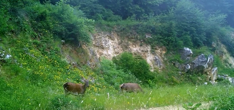 Esra TÜRKER/BURSA, (DHA)-BURSA'da yaban hayatı görüntülemek için kurulan fotokapanlara dişi kızılgeyikler yansıdı. Ormandaki bir yamaçtan inen 3 dişi kızılgeyik, çalılıklarda otladıktan sonra gözden kayboldu.