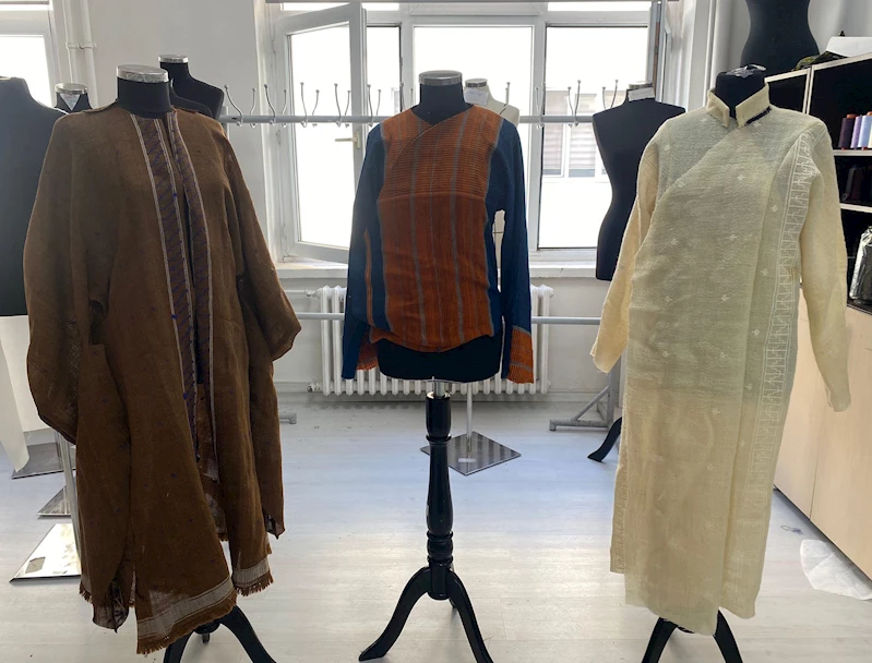 Salih TEKİN/ERZURUM,(DHA)-ERZURUM Atatürk Üniversitesi Güzel Sanatlar Fakültesi Tekstil ve Moda Tasarımı Bölümü'nü bitiren 5 öğrenci, mezuniyet çalışmasında annelerinin sandıkta sakladığı yaklaşık 300 yıllık ihram, Rize bezi ve Karadeniz peştamalını 'sandıktan podyuma' sloganıyla modernize ederek, günlük kıyafete dönüştürdü. 5 arkadaşın geleneksel dokumaları geleceğe taşımak amacıyla tasarladığı kıyafetler, okulda sergilendi.
