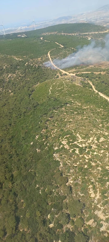 Kadir ÖZEN/İZMİR, (DHA)-İZMİR'in Foça ilçesinde orman yangını çıktı. Alevlere, havadan ve karadan müdahale sürüyor.