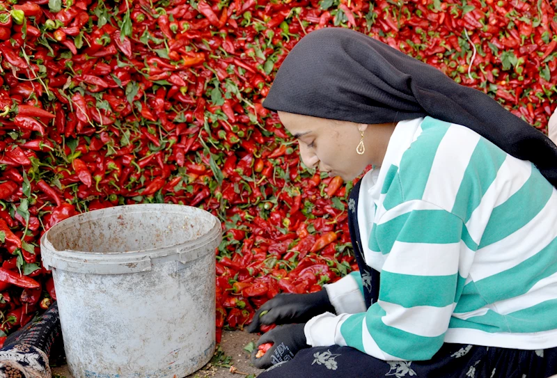İlçede pul biber üretimi yapılan 20 tesiste, merkez ve kırsal mahallelerde oluşturulan çöp çekme alanlarında ise 8 bin tarım işçisi istihdam edilirken, mevsimlik işçiler acıdan ekmeklerini kazanıyorlar. 2 ay sürecek çalışmada çoğunluğunu kadınların oluşturduğu 8 bin tarım işçisi, aile ekonomilerine katkı sağlıyor.