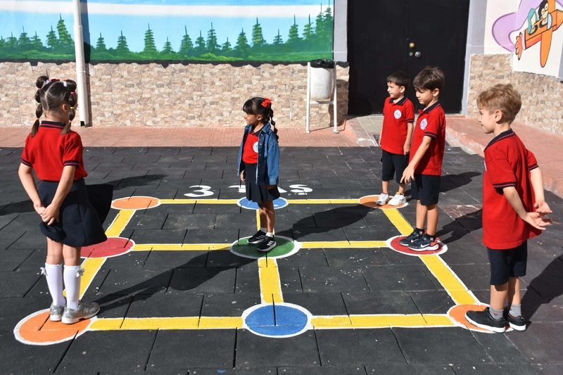 Seza Nur ALPDÜNDAR/İZMİR,(DHA)-İZMİR'de Namık Kemal İlkokulu öğrencileri, geçmişte sokaklarda oynanan seksek, yağ satarım bal satarım, dönme dolap, salyangoz, istop, halat çekme, ip atlama gibi geleneksel çocuk oyunlarını okul bahçelerindeki oyun çizgileriyle öğreniyor. Okul müdürü Sinan Kayhan, "Çocuklarımızı geleneksel oyunlarla tanıştırarak, ekran bağımlılığı yapan dijital oyunlardan kurtulmalarının faydalarını görüyoruz" dedi.