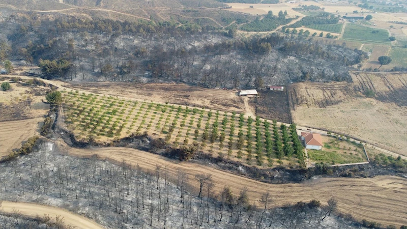 Nazif Cemhan ŞEN/ÇANAKKALE, (DHA)- ÇANAKKALE’nin Gelibolu ilçesinde çıkıp Eceabat'a ulaşan, ekiplerin müdahalesiyle 3’üncü günde kontrol altına alınan yangında, Kumköy köyünde sahibi tarafından çevresindeki otlar temizlendiği için zarar görmeyen ceviz bahçesi, dronla görüntülendi.