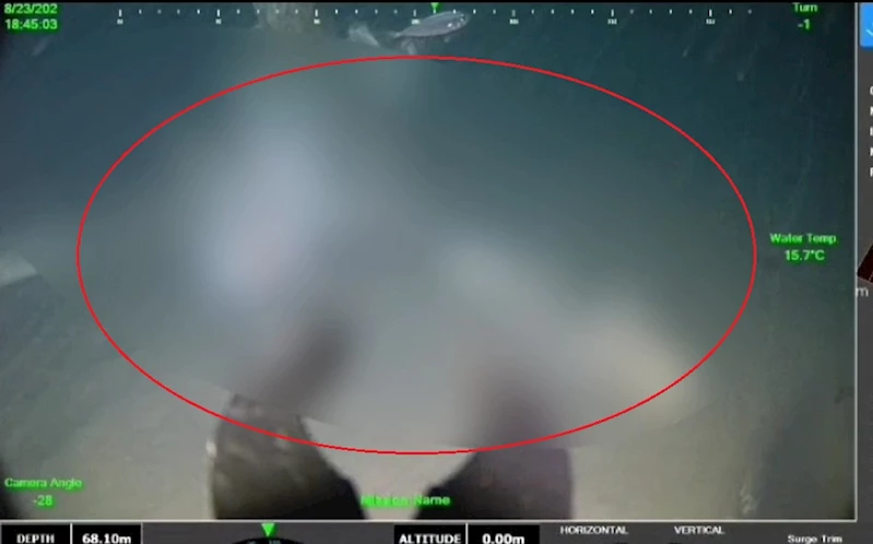 Yalova'dan Bozcaada'ya gitmek üzere denize açıldığı teknesi, parçalanmış ve yarı batık halde bulunan iş insanı Halit Yukay’ın, 19 gün sonra 68 metre derinlikte tespit edilen cenazesinin görüntülerine DHA ulaştı. Kıyı Emniyeti Genel Müdürlüğü’nün botuyla denize açılan deniz polisinin Yan Taramalı Sonar (YTS) cihazıyla yerini tespit ettiği cenaze, insansız su altı robotu (ROV) ile görüntülendi. Dalgıç polisin, “YTS cihazıyla şöyle bir parça tespit ettik. Bu koordinatta. Daha sonra ROV ile bölgede dalış gerçekleştirdik. Karşımızda Erdek Yarımadası, Erdek Yarımadası'ndan 7 mil açıktayız. ROV cihazıyla kayıp Halit Yukay’ı polis dalgıç ekipleri ve Kıyı Emniyeti’nin desteğiyle bulduk. Şu an bulunduğu yerden çıkarmak için çalışmaları yürütüyoruz” diyerek bilgi verdiği anlar da görüntüye yansıdı. (DHA)