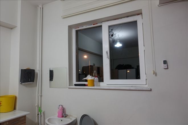 Öte yandan, hastaneye çok sayıda polis ekibi gönderildi. Olayda kullanılan silahlardan çıkan bir kurşun ise o sırada boş olan hastanenin gözlem odasının camına isabet etti.