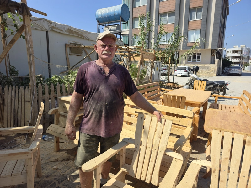 İlçede çocuk yaşlarda babasından devraldığı marangozluk mesleğini yarım asırdır sürdüren Necmeddin Kaptan'ın atölyesinin bulunduğu apartman, 6 Şubat depremlerinde yıkıldı. İş yerindeki tüm makineleri enkaz altında kalarak kullanılamaz hale gelen Kaptan, bir konteynerde mesleğini sürdürmeye karar verdi. İş makineleri olmadığı için ilkel el gereçleriyle masa, sandalye, dolap, bahçe takımı gibi ürünler üretmeye devam eden Kaptan, sıfırdan yeni bir atölye kurdu.