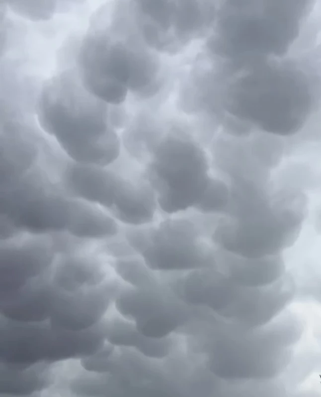 Kumlu ilçesinde gökyüzünü saran Mammatus bulutları ilgi çekti. Kesecik benzeri desenler oluşturan Mammatus bulutlarını görenler, o anları cep telefonlarıyla kaydetti. (DHA)