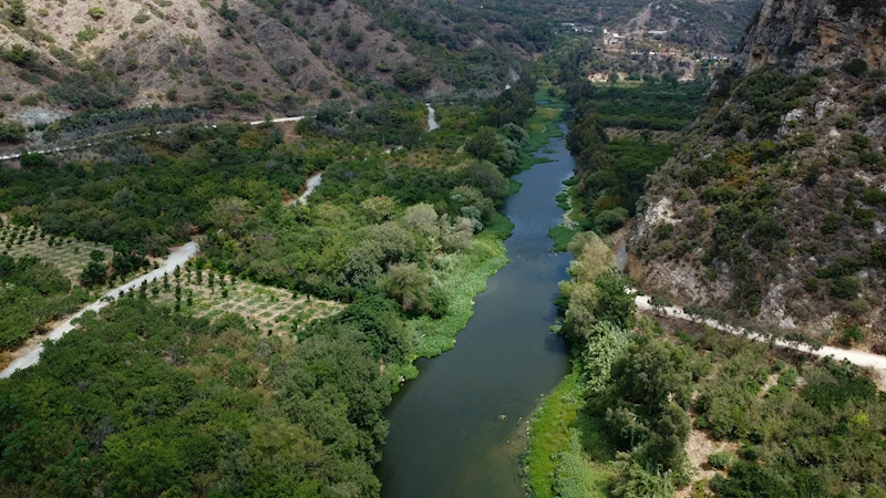 Alican GÜMÜŞ/HATAY, (DHA)-HATAY'ın Defne ilçesinde doğal güzelliğiyle ilgi çeken Aknehir Mahallesi, dron ile havadan görüntülendi.