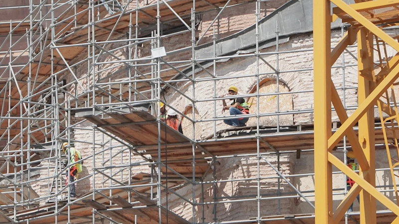 Bakan Ersoy, “2023 yılında başlayan 2'nci etap restorasyon kapsamında minareler ve dış cepheler üzerinde çalışmalarımız devam ediyor. İkinci Bayezid minaresinin söküm ve güçlendirme çalışmaları da halihazırda devam etmekte. Minare platformu üzerine iskele kurarak minare sökümü yapıldı. Onaylı statik projesi esasınca güçlendirme imalatları ve minarede gerekli taş imalatları yapılmakta. Ana kubbe ile ilgili olarak ise uzmanlar bu yapı parçasının güçlendirilmesi gerektiğini belirledi. Kubbenin dış yüzeyindeki kurşun kaplamayı yenileyerek güçlendirme çalışmalarını gerçekleştirmenin planlamasını yaptık. Kubbedeki hassas mozaiklerin zarar görmemesi ve çalışmaların sağlıklı yürütülmesi için kubbe üzerine çelik konstrüksiyon ve koruyucu brandadan geçici bir örtü sistemi kurduk. Bu çalışmayla eş zamanlı olarak iç mekandaki mozaik restorasyonları için 43,5 metre yüksekliğinde, ibadetleri aksatmayacak bir çelik platform sisteminin inşasına başlıyoruz. Bu platformun inşası için de hazırlıklar son aşamaya geldi. Kapılarda gerekli önlemler alındı. Çalışmaları daha güvenli ve hızlı yapmak için kule vinç de kuruldu" ifadelerini kullandı.