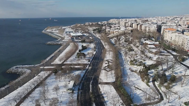 Meteoroloji Genel Müdürlüğünün uyarılarının ardından İstanbul'da 3 gündür etkili olan kar yağışı bazı ilçelerde aralıklarla devam ediyor. Yağışın etkili olduğu ilçelerden Avcılar havadan görüntülendi. Okulların kapalı olmasıyla ana yollarda trafik oluşmazken yeşil alanlarda kar örtüsünün oluştuğu görüldü. (DHA)
