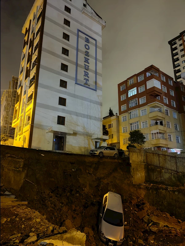 İstanbul-Kartal'da toprak kayması; otomobil inşaatın temel çukuruna düştü