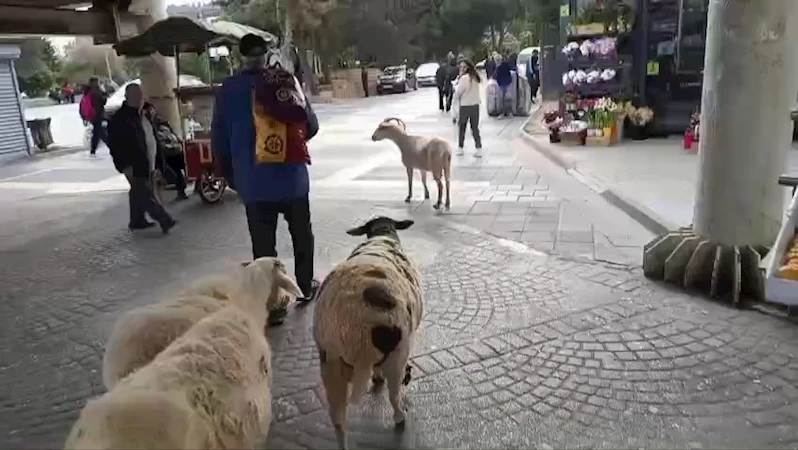 Baran AKKAYA - Ceyda BIYIKLIOĞLU/İSTANBUL,(DHA)-KÜÇÜKÇEKMECE’de bir kişi yanındaki 4 koyunla birlikte yürürken görüntülendi.