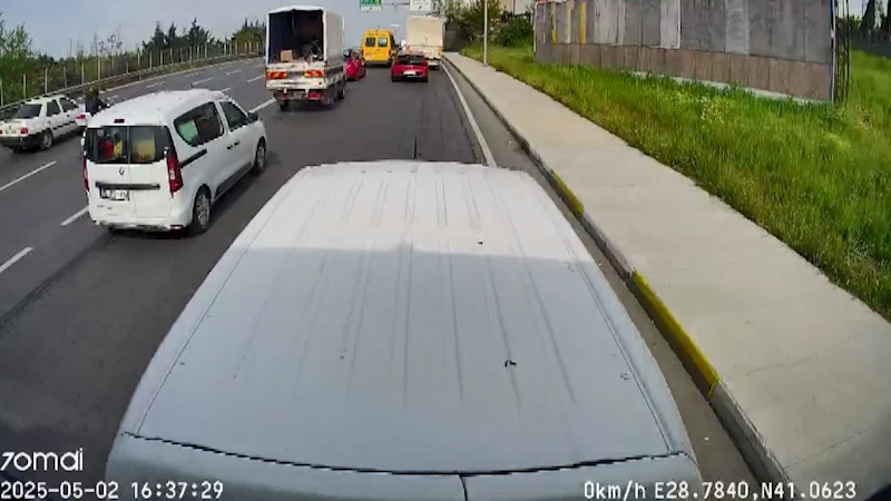 Kaza, 2 Mayıs'ta saat 17.00 sıralarında Halkalı- İkitelli Bağlantı Yolu'nda meydana geldi. İddiaya göre, Ankara istikametinde seyir halinde olan TIR ve hafif ticari araç trafiğin yoğunlaştığı noktada yavaşladı. Trafiğin durma noktasına geldiği sırada iki şoför de aracını durdurdu. Bu sırada hafif ticari aracın sürücüsü fren yerine debriyaja basınca geri geri kayarak arkasındaki TIR'a çarptı. Öte yandan kazanın ardından hafif ticari aracın şoför koltuğuna yolcu koltuğunda oturan kadının geçmesi ise dikkat çekti. Yaşanan kaza anı ise TIR'ın araç içi kamerasına yansıdı.