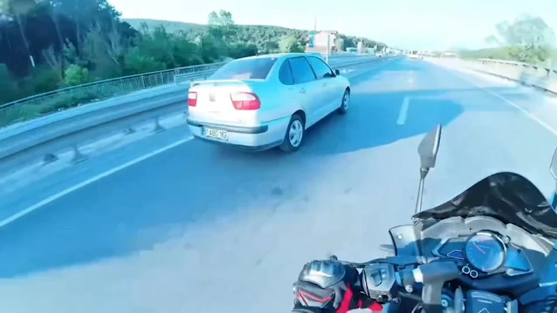 Kaza dün Maltepe'de meydana geldi. Caddede sollama yapan otomobil, yolun sol şeridinde seyir halinde olan motosikletin önüne çıktı. Korna çalarak otomobile tepki gösteren motosiklet sürücüsü, daha sonra sağ şeritten otomobile yaklaşarak eliyle tepki göstermeye devam etti. Bu sırada sürücüsünün dikkati dağılan motosiklet, önünde seyreden İETT otobüsüne çarptı. Kazanın etkisiyle yola düşen motosiklet sürücüsü, bir süre sürüklendi. Kaza anı motosiklet sürücüsünün kask kamerası tarafından saniye saniye kaydedildi. (DHA)