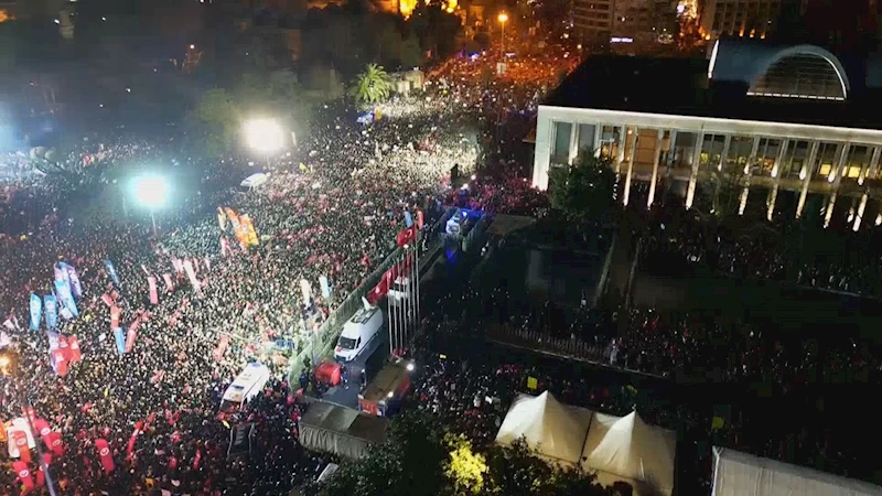 CHP Genel Başkanı Özgür Özel, Saraçhane'deki İstanbul Büyükşehir Belediyesi Binası'nın önünde konuştu. Özel, "Bugün direnişin 5'inci gününde milli iradenin ve İstanbul'un kalbinde yine Saraçhane'deyiz. İlk gün yüz binlerdik, artarak 500 bin, 550 bin olduk. Siyasi hayatımda ilk kez iki gece üst üste aynı yerde ama hiç uyumadan konuşma yapmak gibi bir deneyimi ilk kez sizinle paylaşıyorum. Dünden bugüne yatmadık, ayaktayız. Meydandayız, Ekrem Başkanımızın arkasındayız. Siz burada bir tarih yazıyorsunuz. 19 Mart 2025, 20 Mart, 21 Mart, 22 Mart, 23 Mart. Beş gece üst üste yarım milyon kişiyi, 1 milyon kişiyi zorlayan rakamlarla bir meydanda toplanmak, hem de toplantı yasağına rağmen, engellemelere rağmen, toplu ulaşımın, köprülerin kapanmasına rağmen, inançla, kararlılıkla, azimle, bu tek adam rejimine isyanla buralara geliyorsunuz. İyi ki varsınız. Bugün aslında hüznün günü, bugün kederin günü. Bugün bir ayrılığın ilk günü gibi görülebilir. Ekrem Başkanımızı, can yoldaşımızı, Ekrem ağabeyimizi, Ekrem evladımızı, Ekrem kardeşimizi bizden alıp kopardılar. İsyandayız. Ancak bu meydanda hüzün yok, inanç var. Keder yok, umut var. Çünkü bu umudu yükselten bu meydan, bu binler, bu yüz binler, bu milyonlar, biz Ekrem Başkanla birlikte Türkiye'nin yarınları için sadece ve sadece sizlere güveniyoruz" dedi.