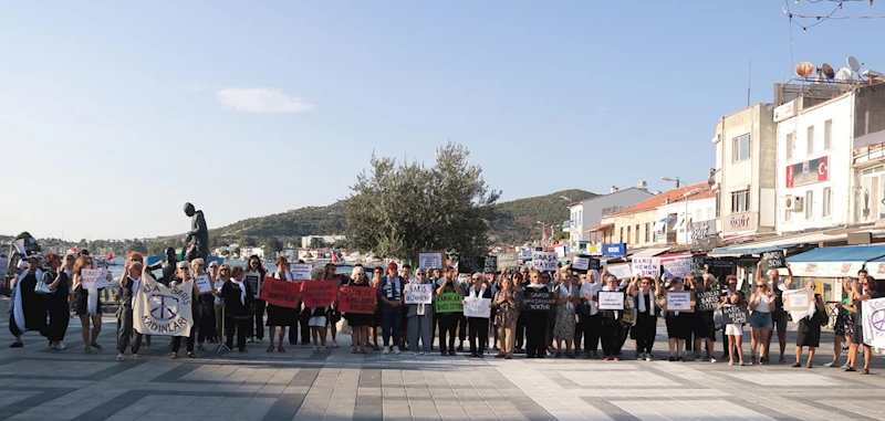 Seyfi GÜL/FOÇA (İzmir), (DHA)- İZMİR'in Foça ilçesinde kadınlar, Gazze’de saldırılarını sürdüren İsrail’i protesto etti.